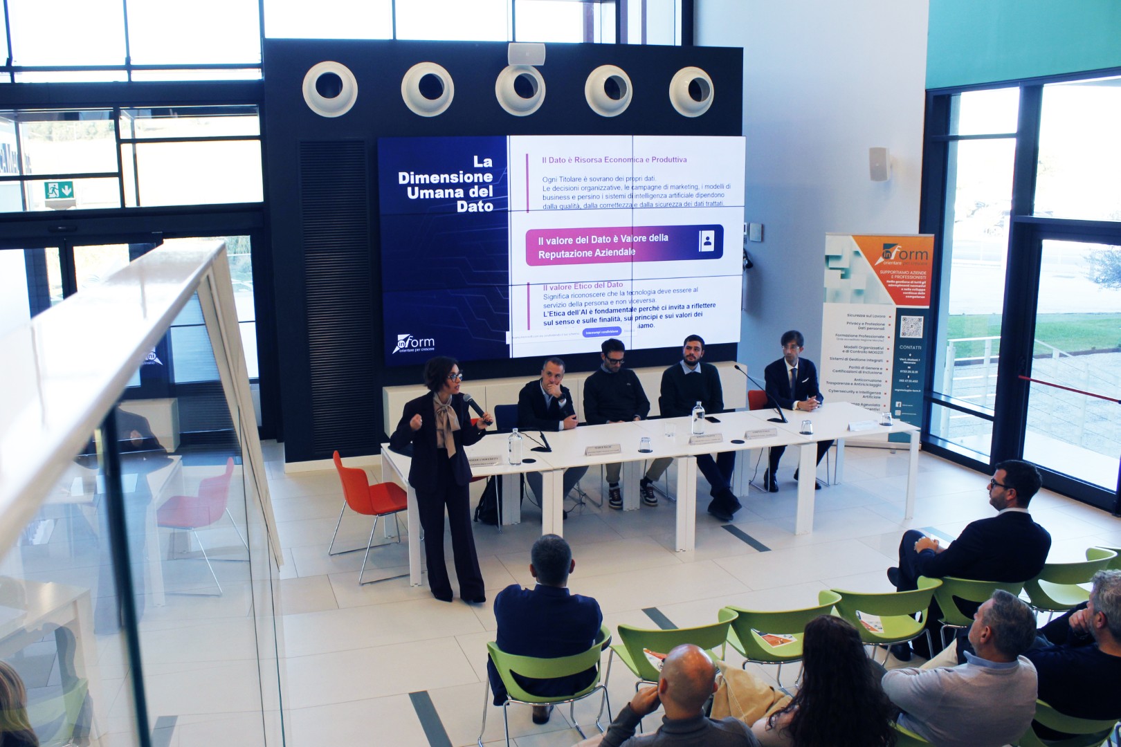 La Dott.ssa Federica Morichetti ha aperto i lavori con un intervento dedicato al rapporto tra AI, organizzazione aziendale ed etica. Un messaggio su tutti: l’intelligenza artificiale è un acceleratore, ma il suo valore dipende sempre dalla capacità umana di guidarla in modo responsabile.